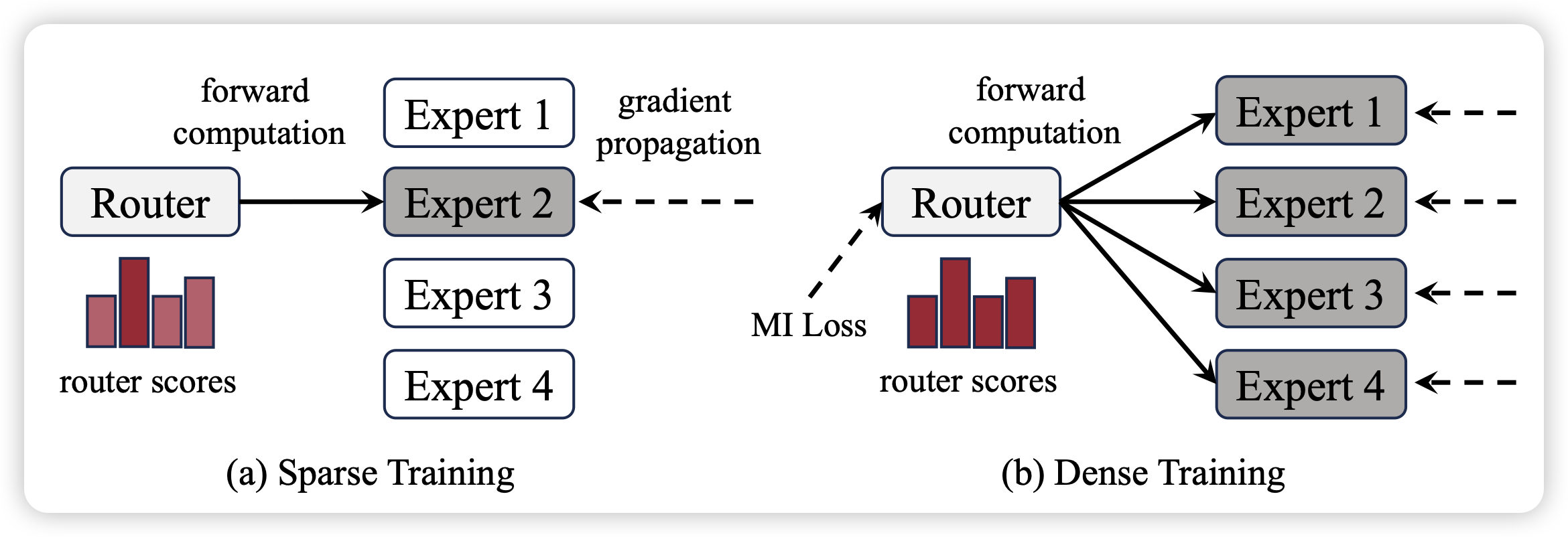 作者发现,MoE训练的时候也是激活router然后选择前topk,这样训练其实并不高效,因为所有的expert参数仍然是需要加载的。能不能训练的时候取topk里的k是无穷,然后预测的时候再使用topk=2。作者发现这样训练是非常参数高效的,关键是,效果还很好
