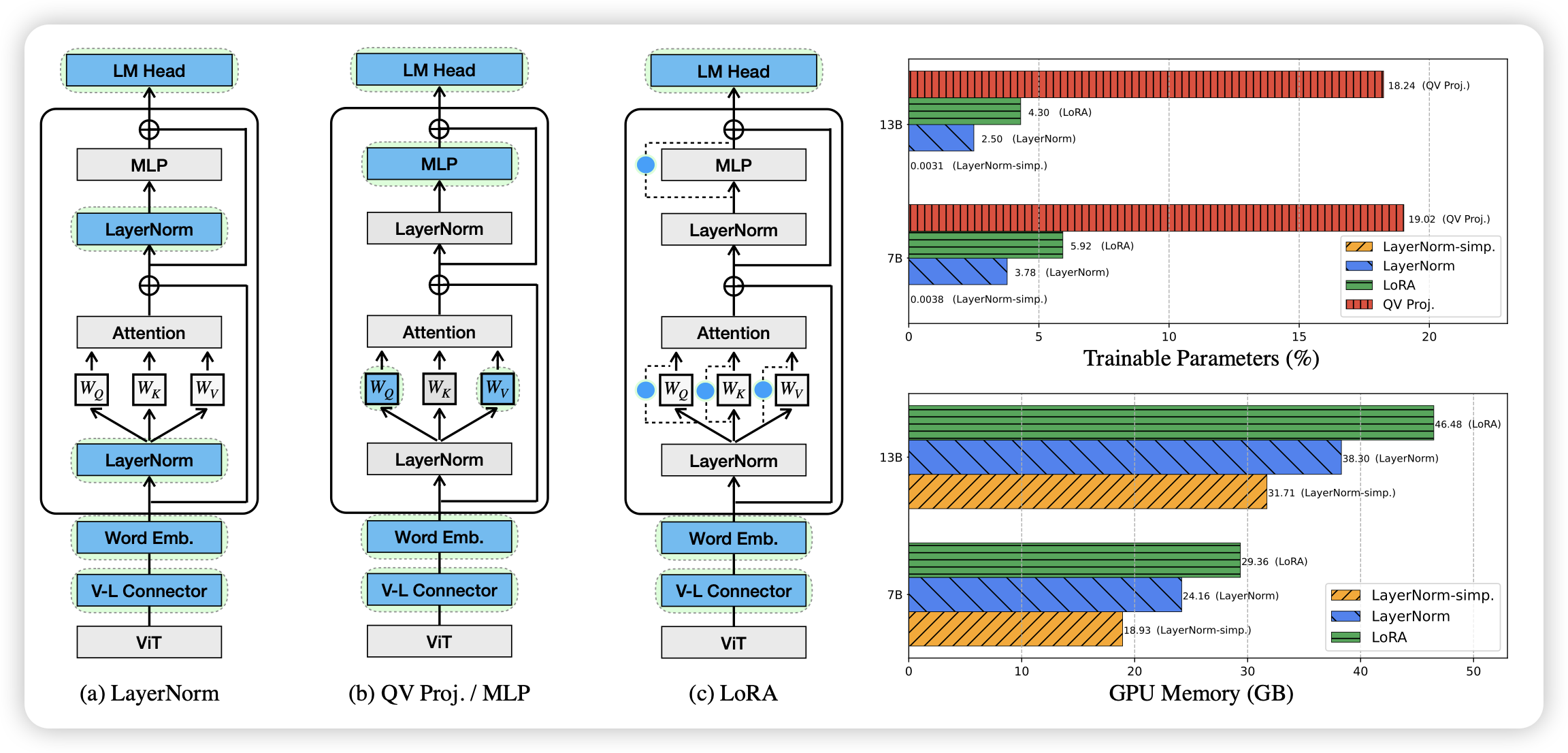 PET(parameter efficient tuning)领域的文章,如标题那样,作者发现对于multimodal-LM,只调整transformer block内部的layernorm也行,需要的参数比Lora少,同时效果有的时候会更好。