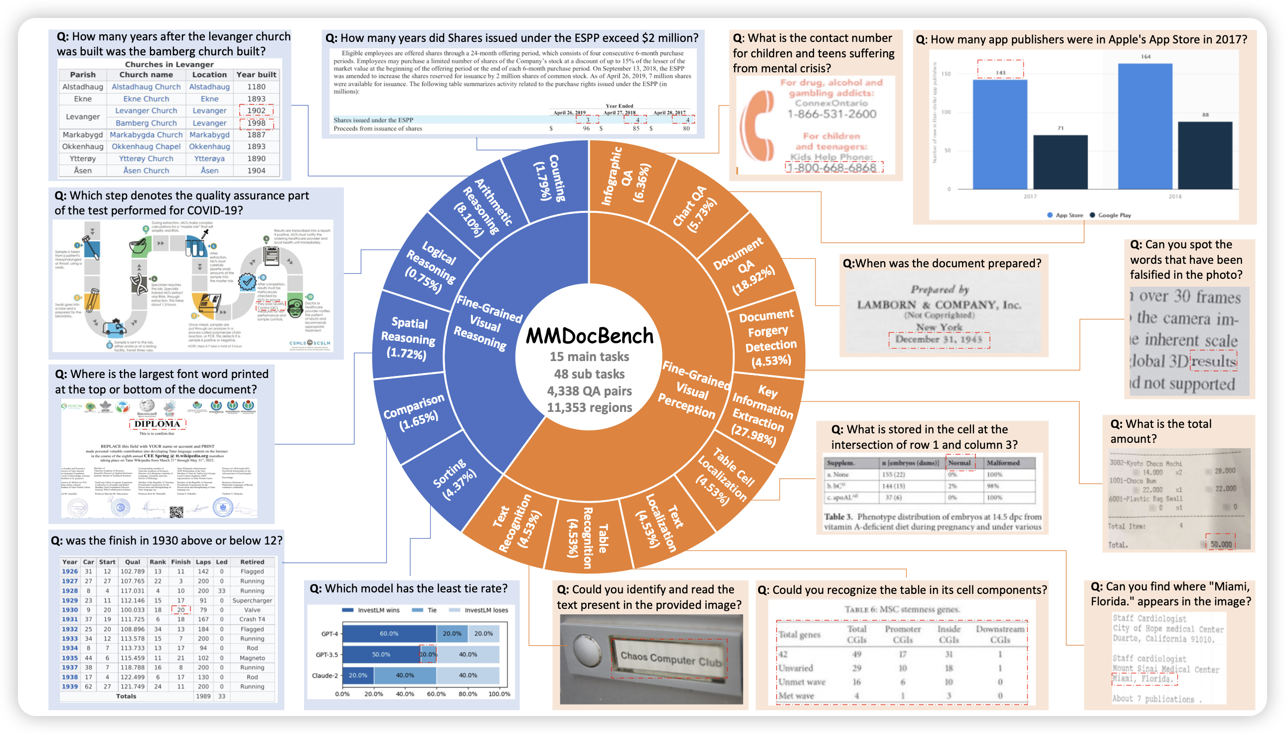 MMDocBench: Benchmarking Large Vision-Language Models for Fine-Grained Visual Document Understanding