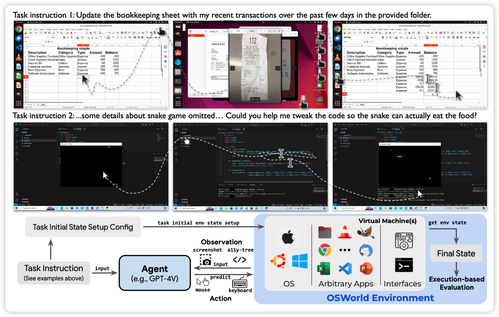 Tao Yu老师的工作:作者在windows/mac os/ubuntu几个系统上搭建了模拟环境,可以进行各种操作。然后定义了一个含有369 task的数据集,发现目前的Agent在这些任务上非常差。