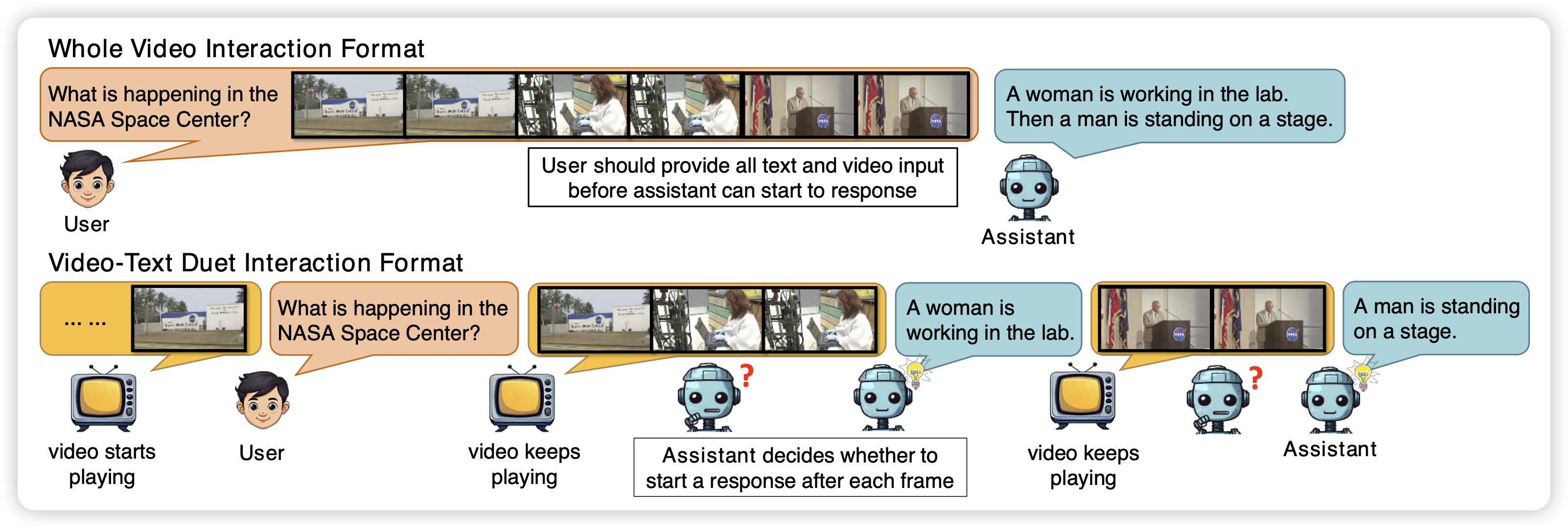 VideoLLM Knows When to Speak: Enhancing Time-Sensitive Video Comprehension with Video-Text Duet Interaction Format