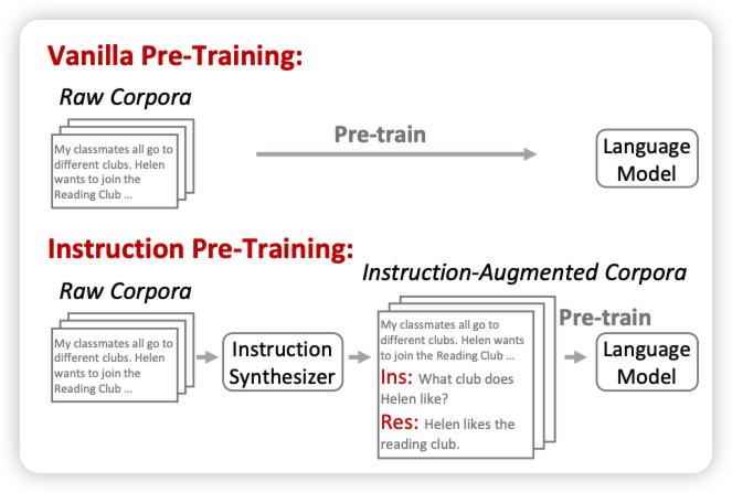 Furu Wei的工作,作者发现instruction Tuning先找到任务再找标注,效果好,但是数据很难scaling。如果自顶向下呢?先从预训练数据集里找到instruction和response,再和原始语料丢到一起pretrain。作者发现这样效果很好,搞了400M的pair以后,llama3-8B超过了llama-70B