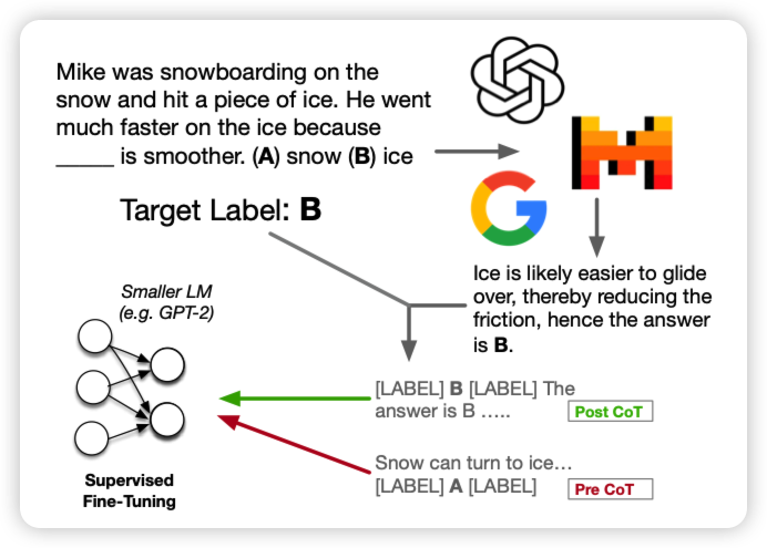 如果大家还记得我在Manyshot-ICL阅读笔记里讲到的关于reasoning-anchor的讨论,今天有个工作发现了类似的现象:他们研究了带有CoT标注的数据集的finetune,发现把CoT chain放在answer后面实际上会让下游任务表现变得更好。而且,其实CoT trace是错误的可能也没有这么敏感,关键是提到几个关键词。