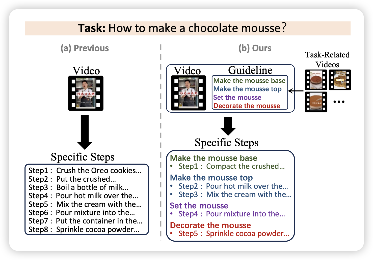 作者发现,目前的视频理解数据(教程视频)的标注粒度太粗了、然后没有层次结构。作者找了3.5k个教程视频,标出了细粒度的task和task的层次结构,在时间上对齐。