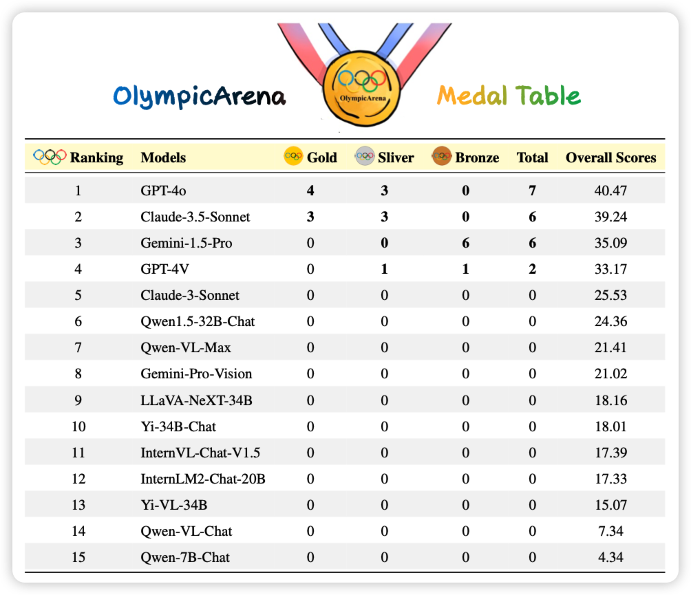 OlympicArena Medal Ranks: Who Is the Most Intelligent AI So Far?