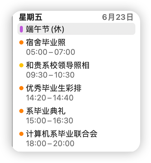 其实我是个没有啥仪式感的人,毕业的典礼等活动重点安排在了6.23-6.26,当时真的是很忙的几天,我最开始觉得很烦、耽误我科研。