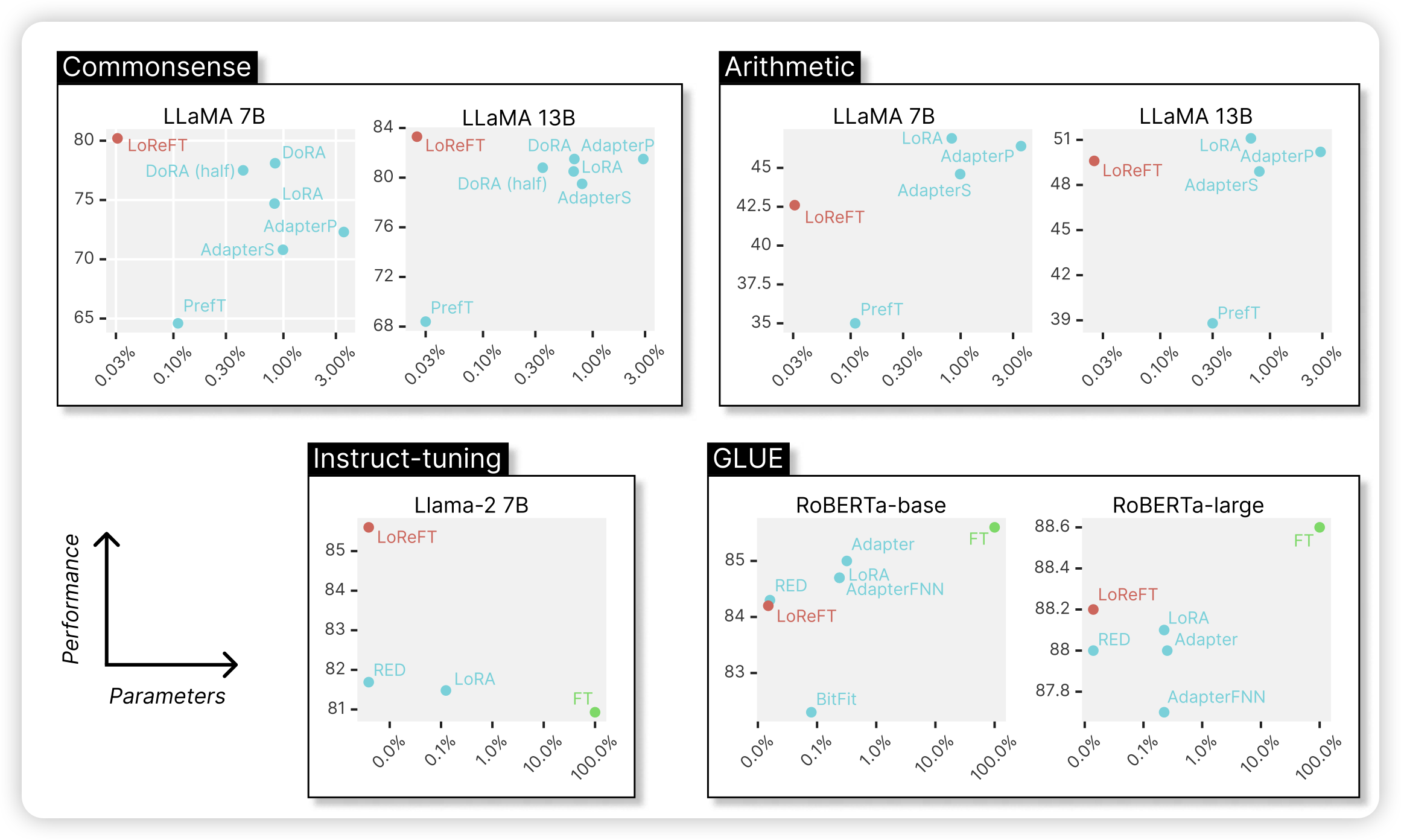 这是一篇delta tuning的论文:作者发现LLM中的hidden-state其实表征了巨大的信息,如果只给模型学习一个hidden-state,别的都锁住,比起传统的delta tuning,效果和参数量都好非常多