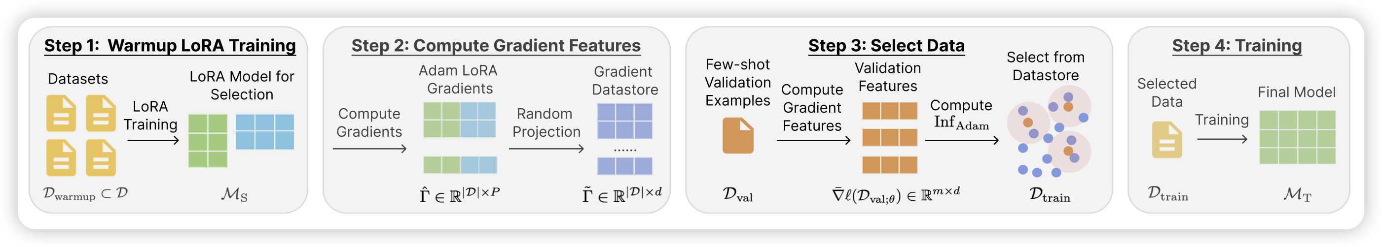 danqi chen的论文。作者提到如果instruction的目的是学到一些特定的能力,比如reasoning,其实不是所有数据都对最终结果有效果,这个场景可以认为是Targeted Instruction Tuning。作者提出了一套optimizer-aware的算法,根据gradient自动去选择最有效的数据。作者发现用该方法,选择5%的数据其最终效果要优于全数据SFT。另外,选择的数据具有稳定性、一致性:在同样的目的中,小模型选择的数据和大模型选择的数据是一致的。