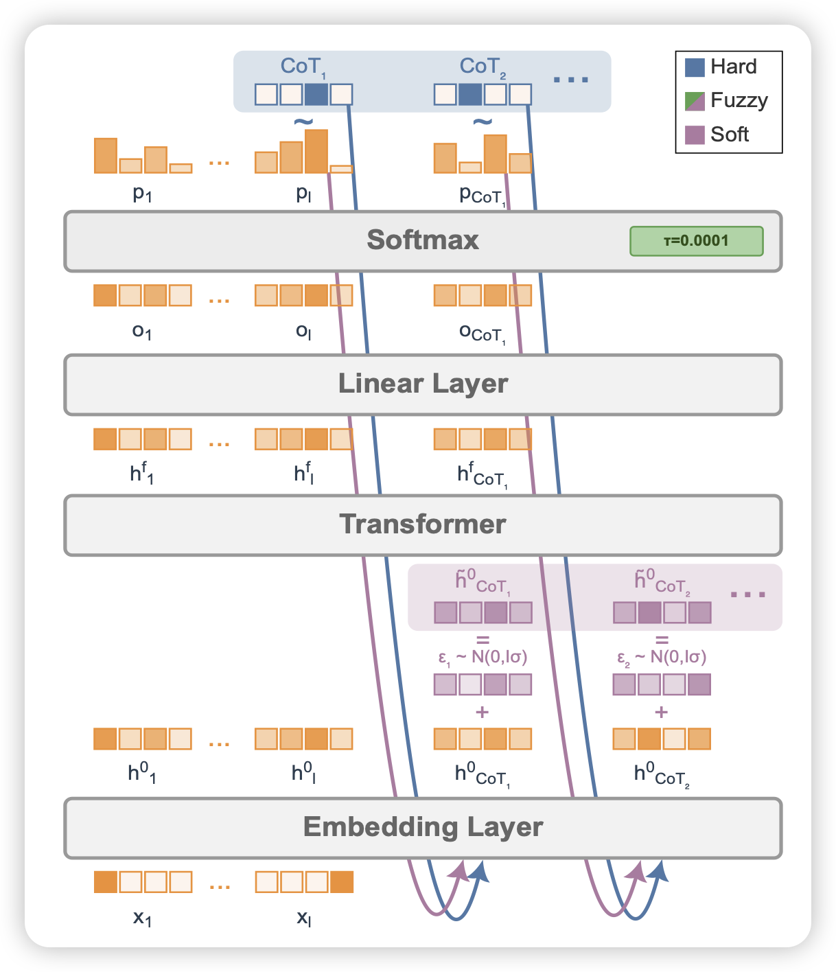 Meta的一篇关于latent cot的工作,作者做了一个hard/soft/fuzzy模式相结合的方案,然后第一次可以不用distill的方式,直接训练一个latent cot模型。并发现,在下游任务中,latent cot的bon更高,也就是diversity更高