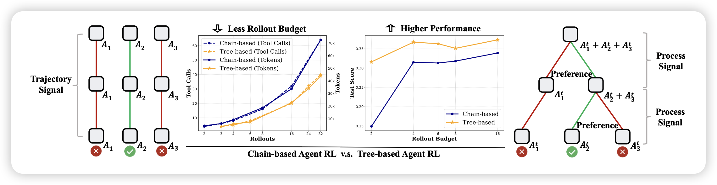之前seed有篇工作,让rl rollout中,从entropy比较大的位置叉出去做成一个类似树结构的rollout。这篇工作做得更深刻一些,直接在rollout时就变成树,用相同的token-prefix作为树路径,叶子节点是不同的EOS。然后作者想了一些招数来对这种rollout结构产生的不同样本做adv