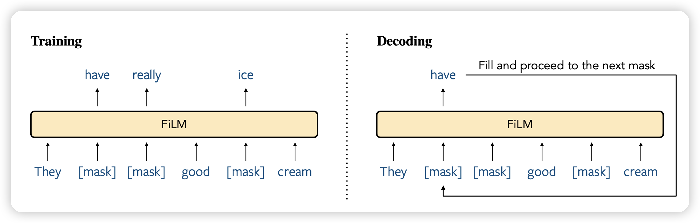 这篇瞄准了auto-regressive的建模方式,训了一个模型通过fillng in的形式做文本建模,每次解码一个[MASK],最终恢复出来文本。发现在scaling以后,他的表现和left-to-right的效果变得接近,同时做in-filling的能力远胜。