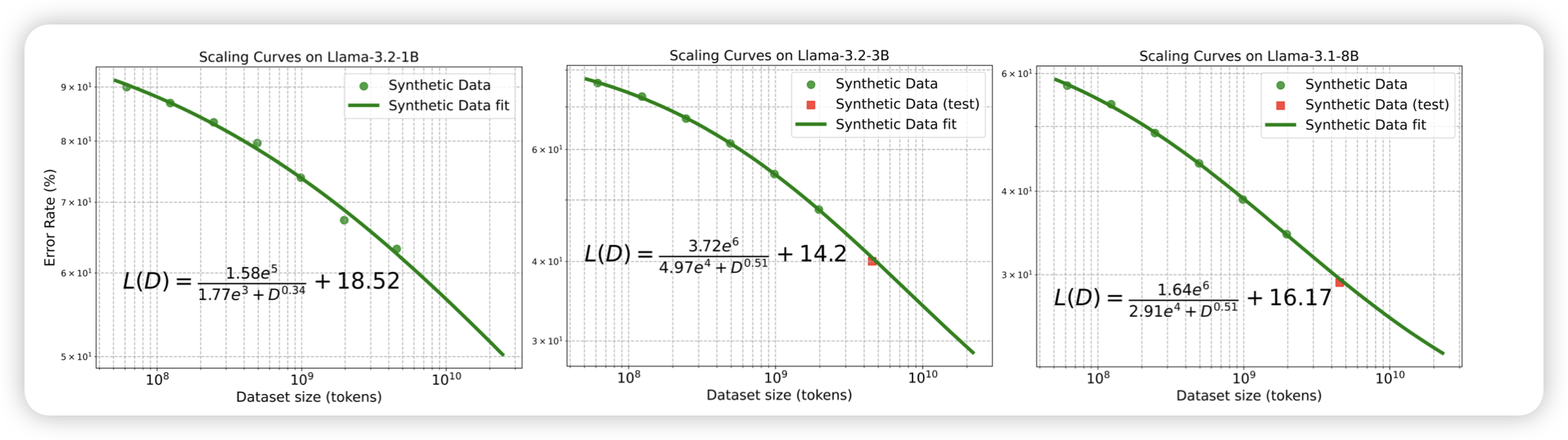 最近蛮少见scaling law的工作了,可能是都被公司挖走默默搞去了。作者研究的问题是,模型在合成数据上训练,效果什么时候会收敛?大致结论是,合成数据的效果收益来源于另一个scaling 曲线,看起来更平缓。然后越大的模型,需要越多的合成数据