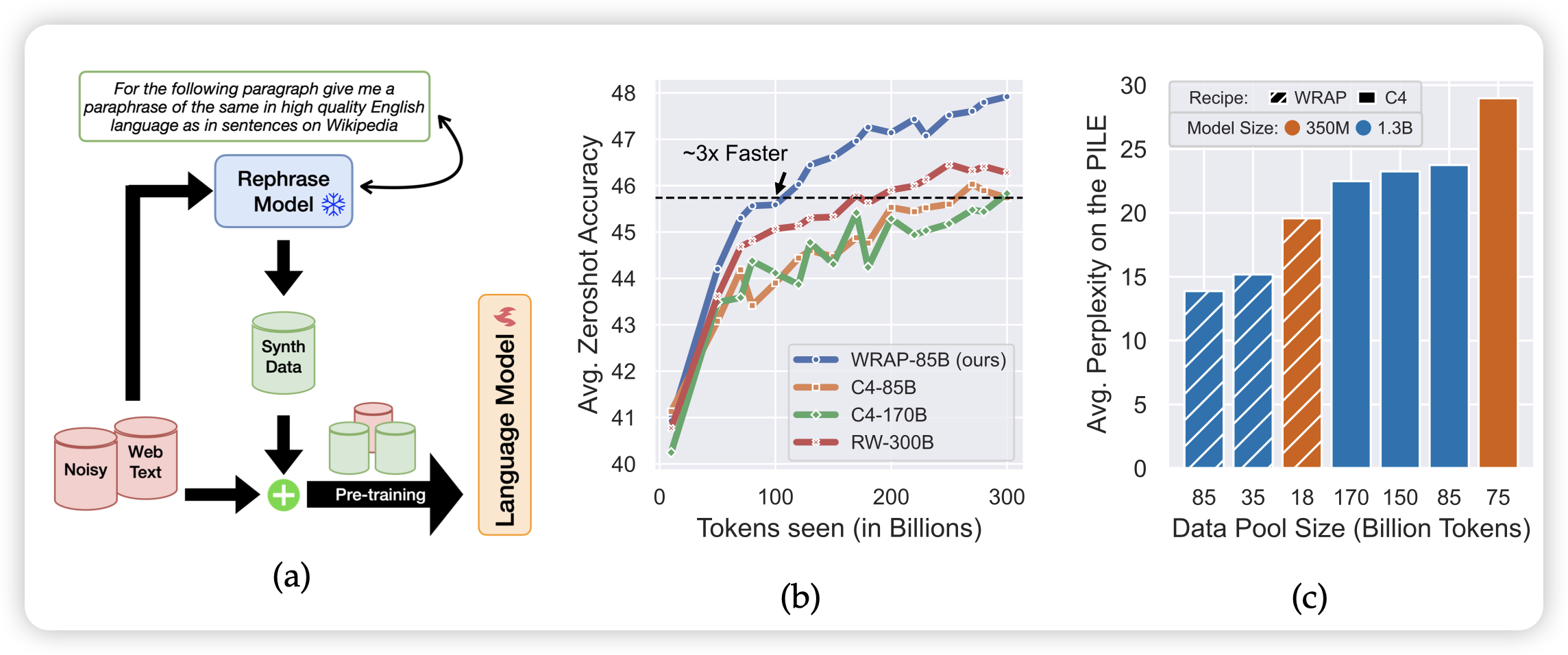 CMU和google的研究,作者思考了一个简单的问题:现在的pretrain-corpus比如C4,虽然数据多但是数据质量太多,我如果用一个别的什么模型比如Llama把C4按照合理、流畅的格式整个重写一遍,会发生什么?
