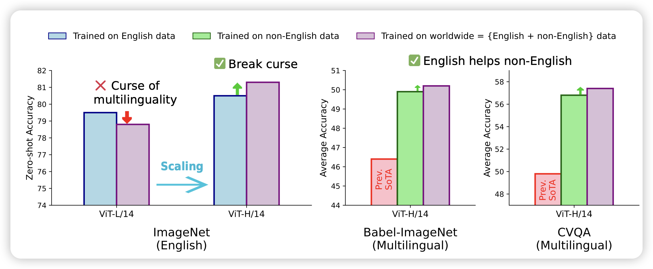 meta的新工作,作者解决了一个clip领域scaling的问题:在多语言数据上训练clip,在英文上的效果反而比english-only的训练要差。作者设计了receipt来解决这个问题,让clip可以从多语言训练中受益