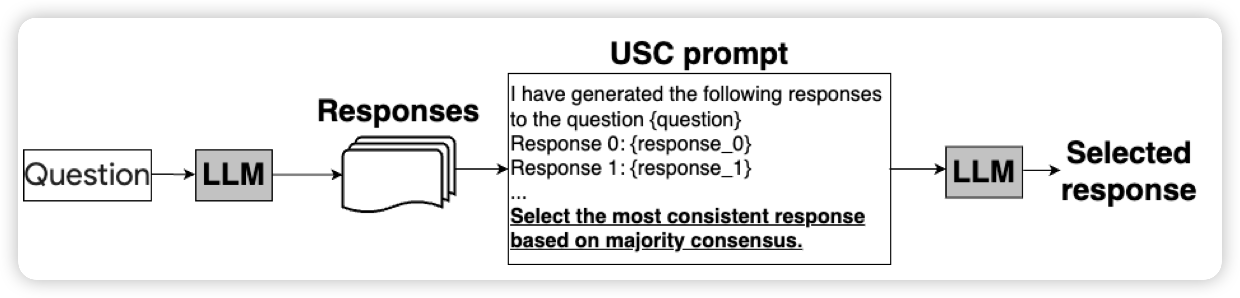 作者把这个困难offload给模型,让模型自己选。这样就能在free-form answer上做self-consistency了。进一步的,对于数学这种有答案的场景,也不需要符合特定的格式,任何回答都可以。