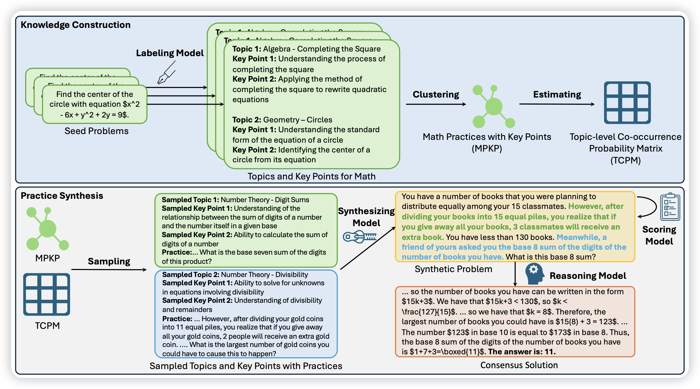 Weizhu Chen的工作,他最近一直focus在怎么把知识体系划分成结构化,再由此由低到高构造数据。这篇,他们在math reasoning问题上做了尝试,先尝试把math场景做一个聚类,然后生成出来更加diverse的query。通过这样生成了1M的Q-A pair,由此直接finetune 7B模型可以在MATH上做到40% acc