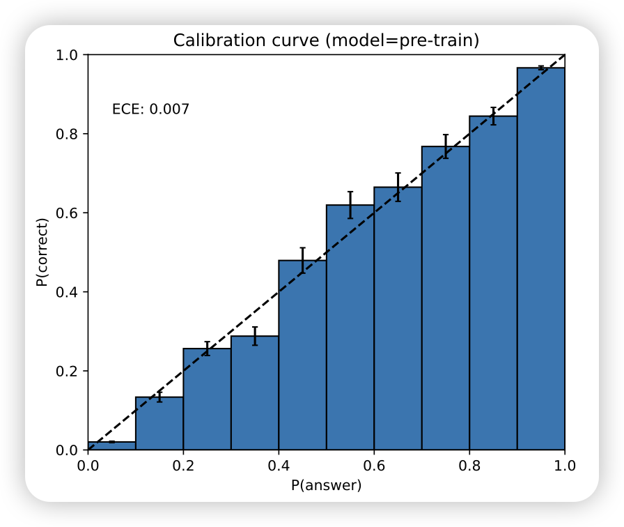 这其实和后来大家发现的calibration现象很像:对于4选1 multi-choice QA场景(比如MMLU),模型对于4个选项token里信心最高的选项的prob越大,对应题目的最终准确率就越高