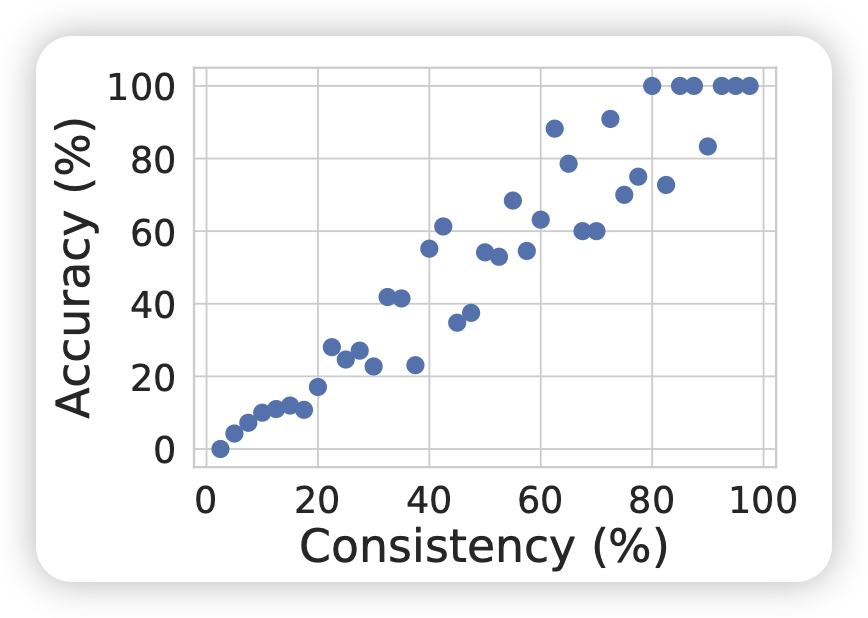 首先,self-consistency论文中报告了一个有趣的结果:他们发现结果一致性越高的query,真实的准确率也越高