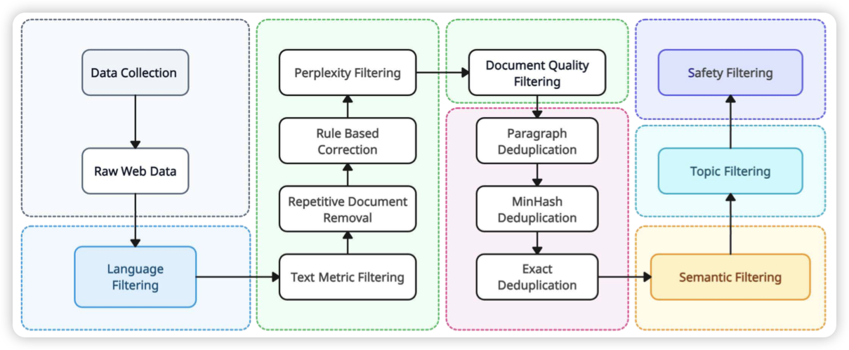 开源的7B和34B模型:作者发现,更多的数据工程是更好的表现的根本来源。并做了一个长达15个步骤的清洗流程,最终训练出了一个很好的语言模型