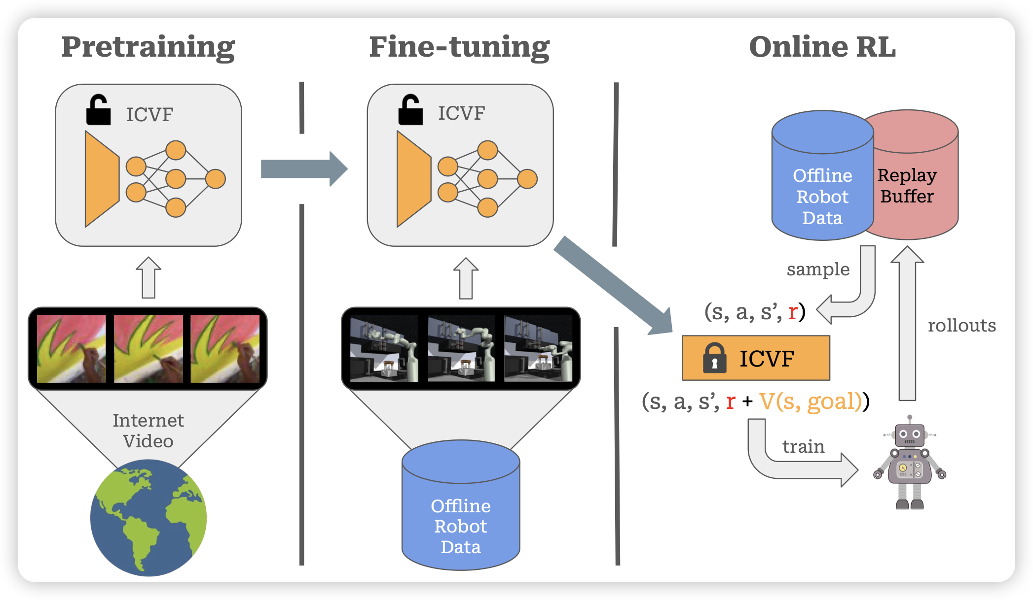 这篇工作讲得故事挺大的,其核心思想是说:能不能让一个value model做value pretrain,提前见到各种各样的视频等数据,来增强value的准确性。