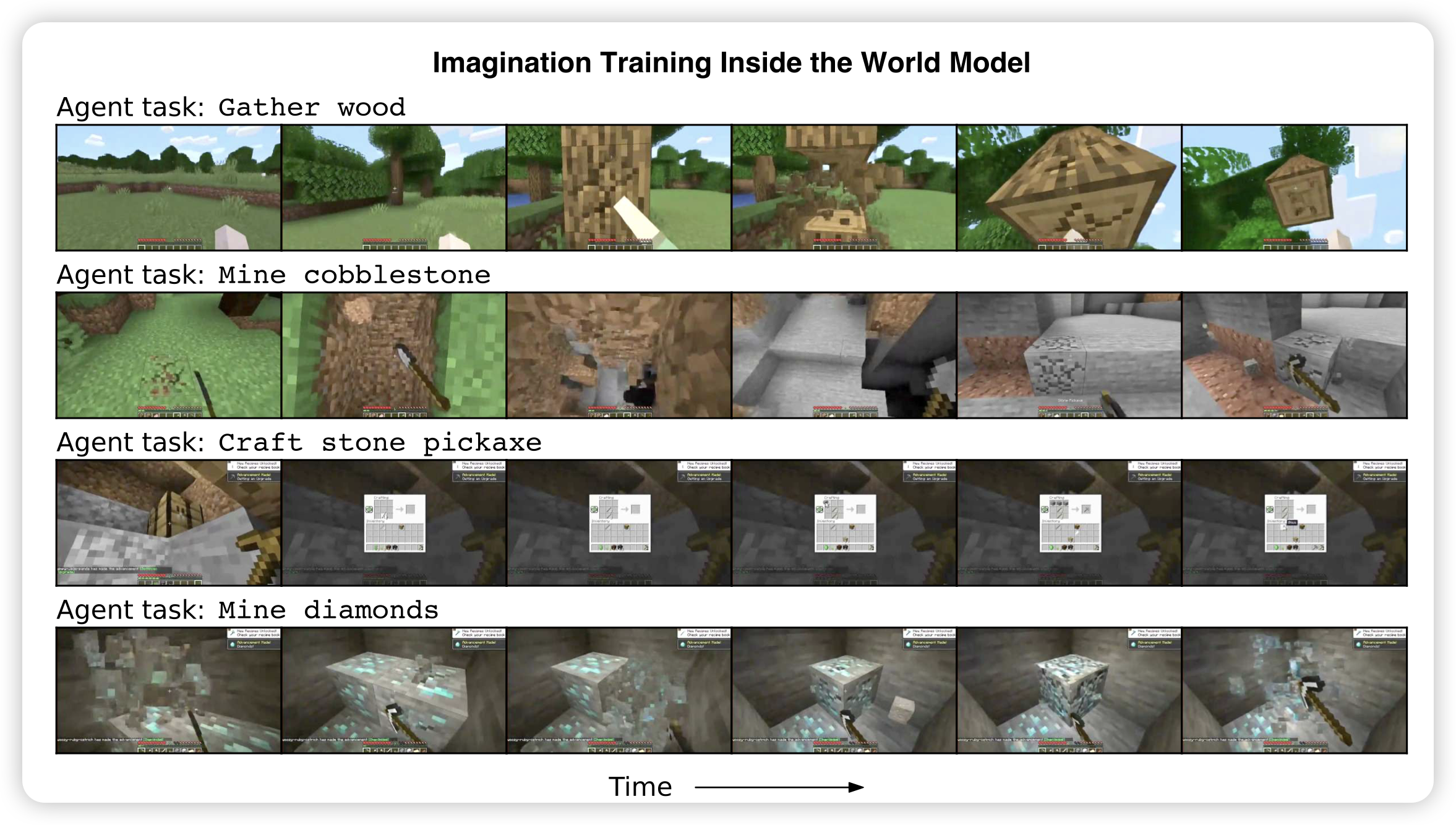 这篇工作只有3个作者,内容却挺nb的。作者在一个minecraft视频生成模型里训练agent,最终在真实游戏里测试挖到了钻石,agent全程都没有和真实世界做过交互