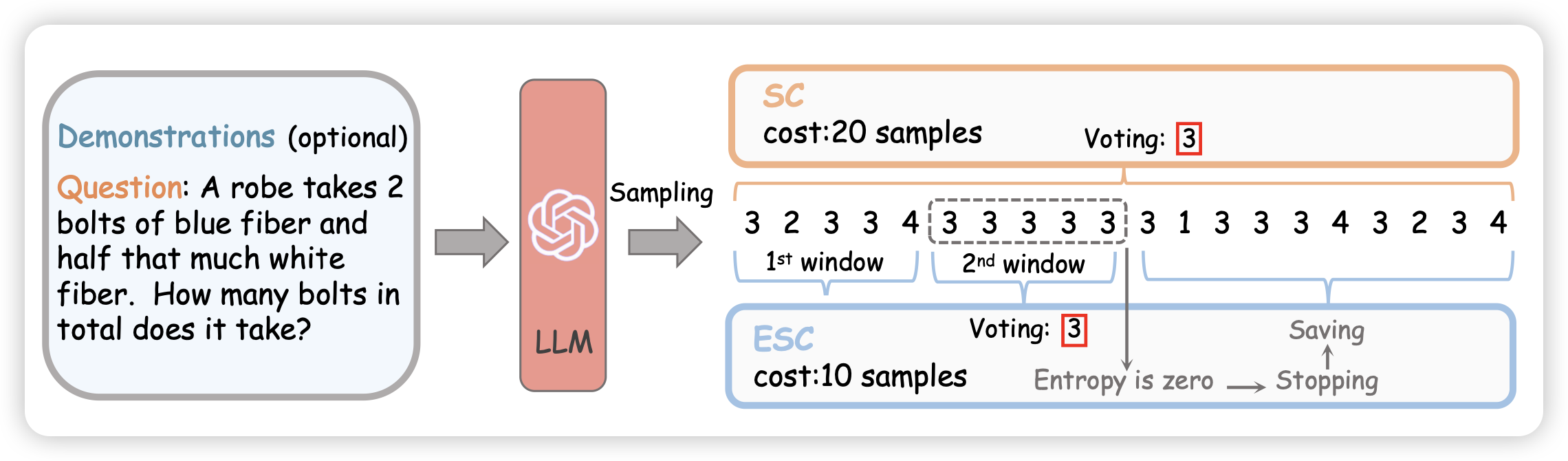 作者认为经典的self-consistency方法(CoT多次,选一个一致性最高的答案)的成本太高,有一个直觉:如果生成了一部分样本,发现已经一致性很高了,是不是就可以early-stopping呢?