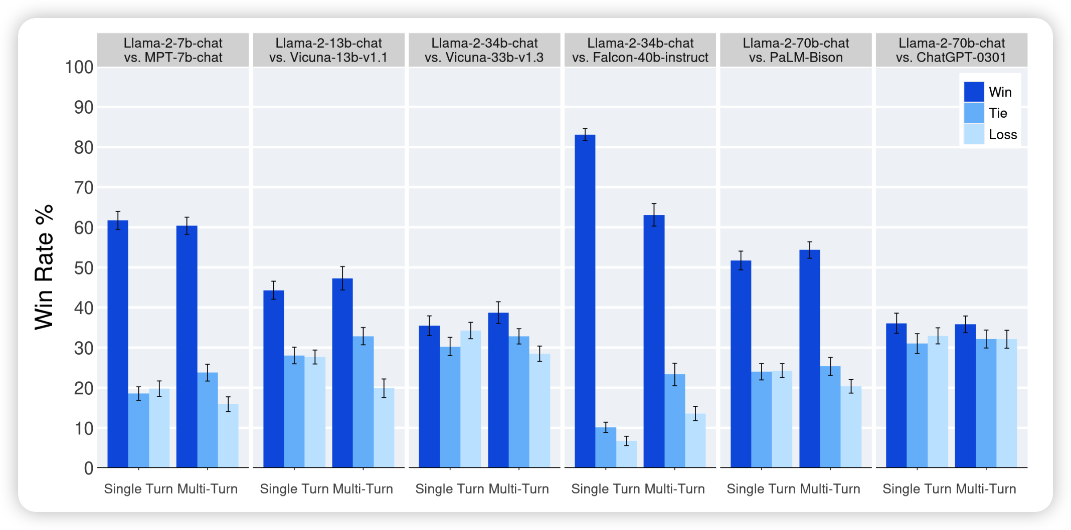 ChatGPT对system prompt也很看重,如果不加system prompt,对比Llama2的win rate就会从44%暴跌到36%