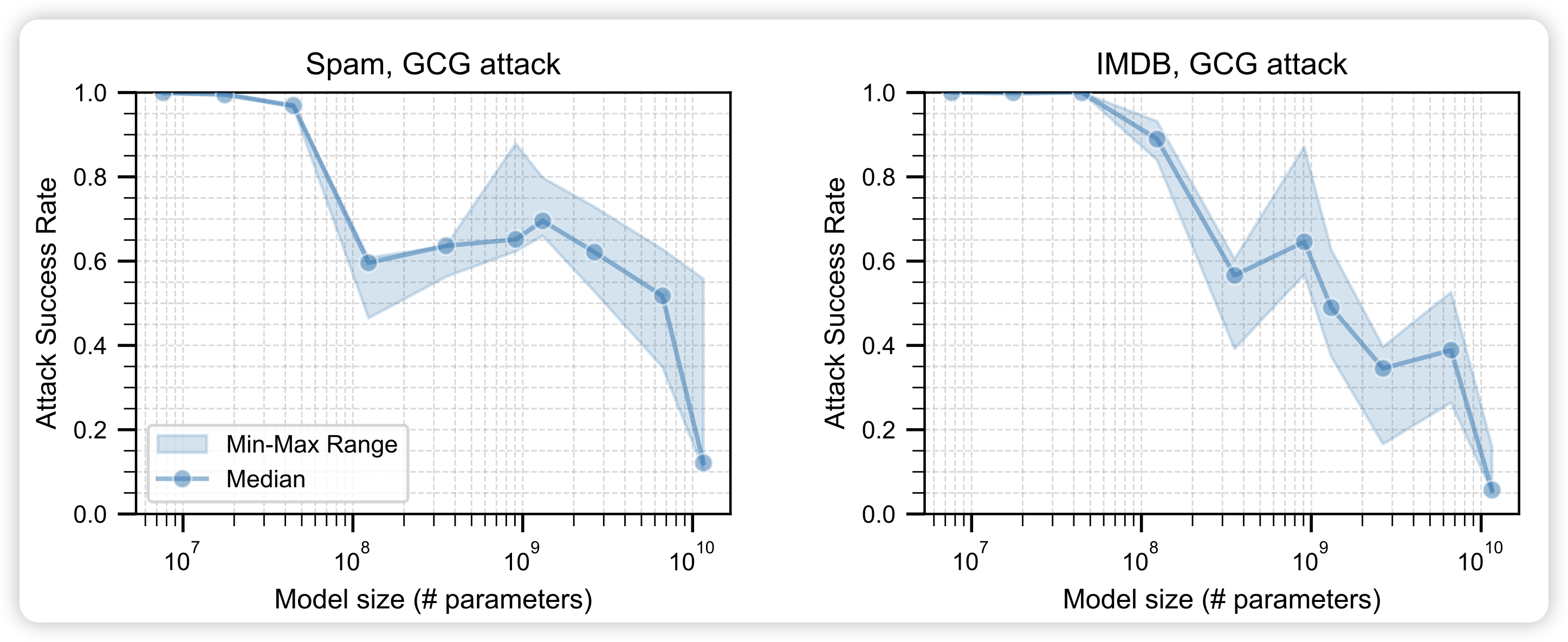 一篇研究攻击+scaling的工作,作者验证了一个结论:在LLM中,是否越大的模型越不容易遭受攻击。发现对于LLM和之前的vision model都是相似的特质。