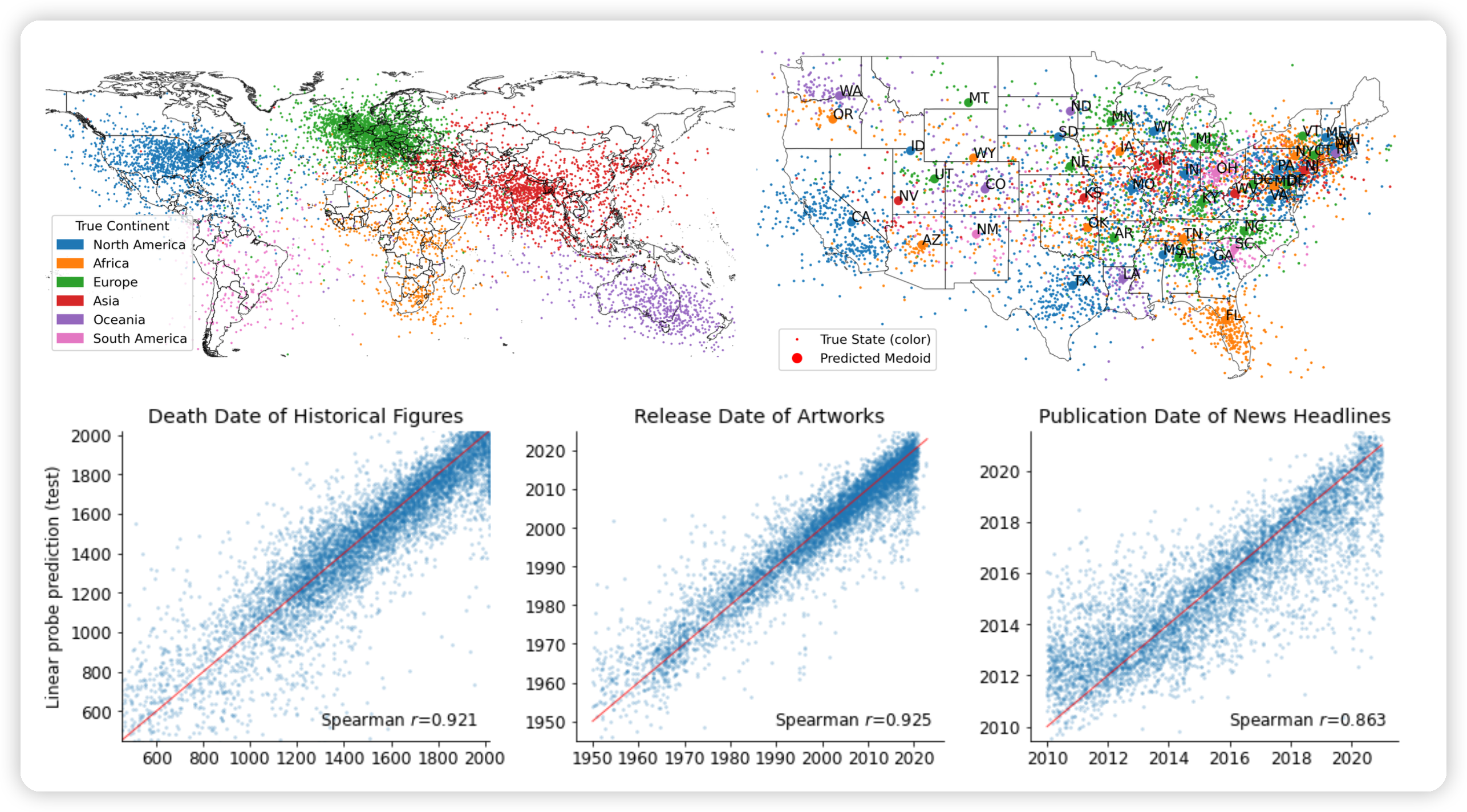 作者发现预言模型不是随机鹦鹉,而是真的学到了时间和位置的信息?具体应该是做了一些PCA降维的方法
