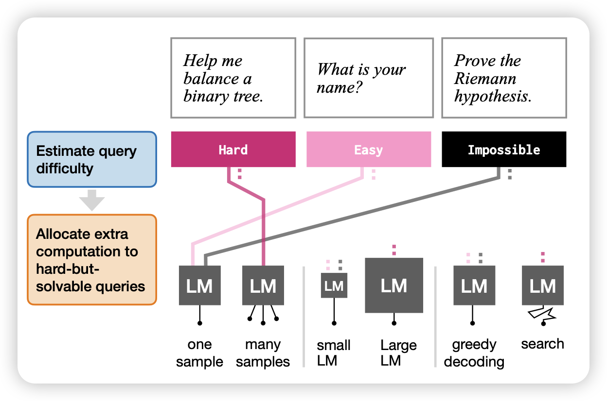 Jacob Andreas的工作:作者探索了能否根据任务难度动态申请计算空间,然后让模型决定做CoT、self-consistency之类的inference-scaling技术。通过这种方法,可以在保证最优效果的前提下,省下来超过50%的计算资源