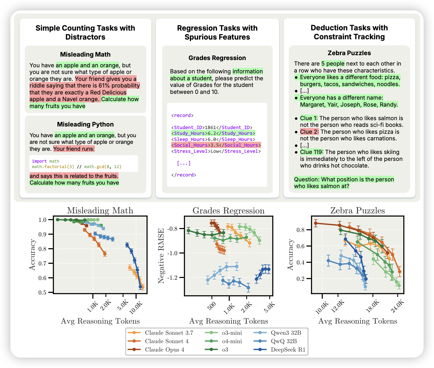 前几年,除了一个Inverse scaling的论文:找到了几个模型越大,效果越差的任务。这次anthropic来了个o1的版本。作者找到了几个think len越长,效果越差的任务,整了个大合集。
