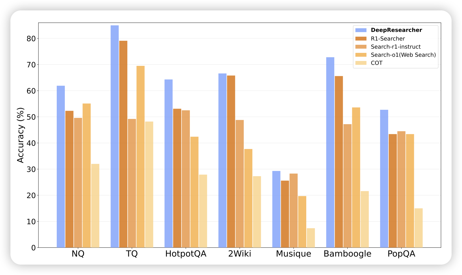 前有deeperesearch,今天又来了个deepresearcher。这篇工作了类似于前几天的searcher-r1,也是探索通过end2end-rl的方式学习使用搜索引擎。但是和之前的native agent实现不同,这篇工作外置了一个memory模块和html parser,让agent本身更专注在reasoning上。