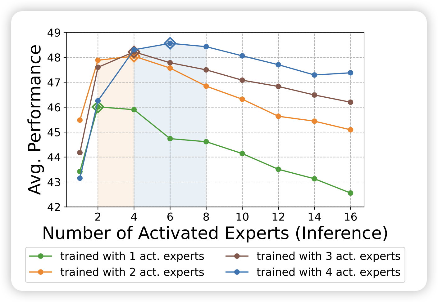 众所周知,moe模型现在一般就是16个专家平均激活一个的比例,那么有人就会问:如果我激活更多,甚至dynamic地激活更多,会不会表现更好呢?其实之前早有人研究过这个问题,叫做dynamic computation require,但是大模型时代倒是没有见到了,我之前推荐过一篇 2024-03-13-insight 用topp而不是topk激活MoE的论文,而今天这篇工作尝试了一个训练的方案:每次去topK,从中随机取k个,让模型训练时就适应激活多种不同数量专家的模式。