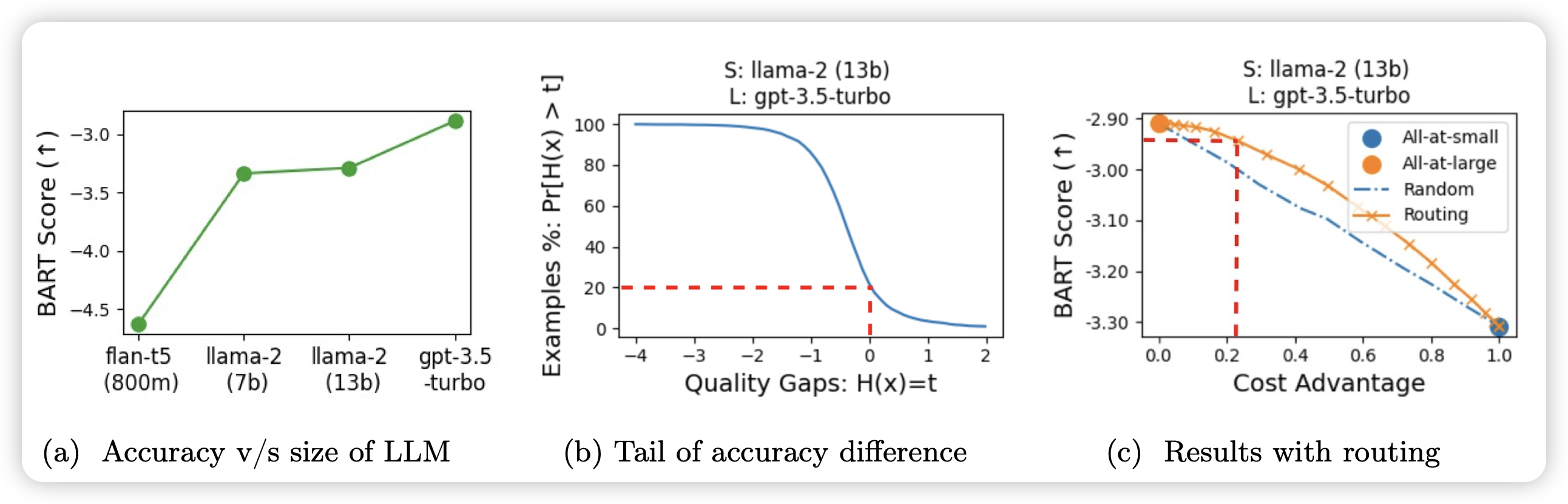 microsoft的老文章,今天挂出来:作者的思路很简单,query本身有简单有困难,对于很简单的问题其实不需要LLM,只需要small language model。能不能训练一个router,可以根据query和预期的回答质量选择llm呢?作者发现可以,并且效果还不错