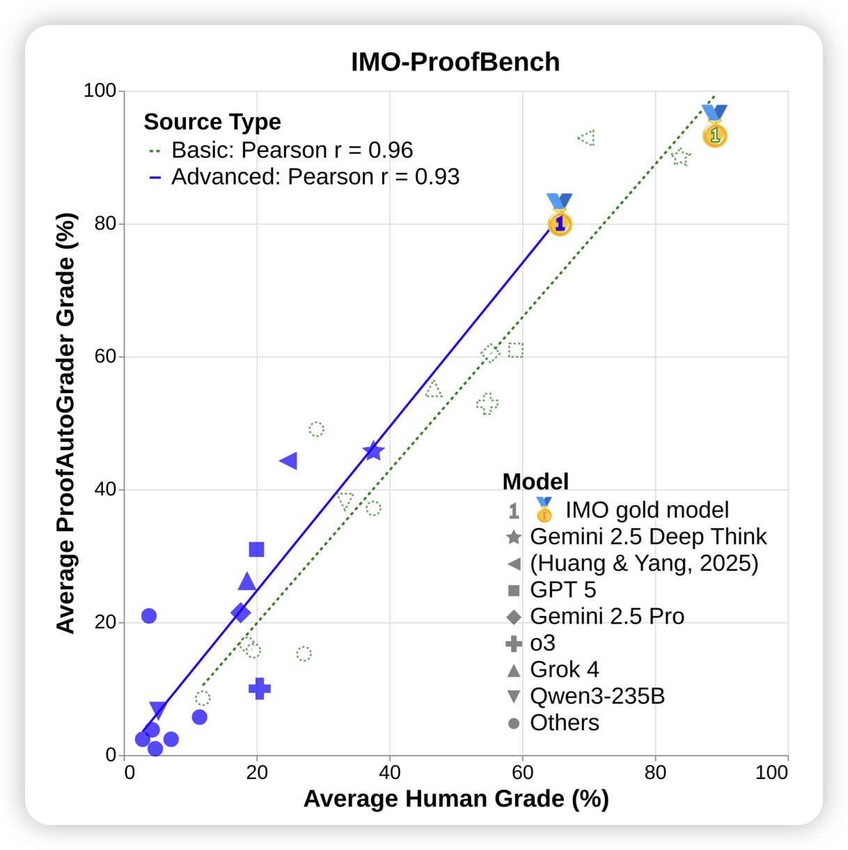 思路简单,工作量就不简单。Google的这篇工作,是一个数学证明题的benchmark,作者认为:目前的已有的llm math评测往往都是对答案verify,其实模型的证明题能力并没有增强。所以,作者做了一个包含400证明题的benchmark,然后找数学家一共写了1000份证明正确性的判断,以此又训练了证明判别器来和数学家结果对齐。由此可以在这个benchmark上衡量不同数学模型的证明能力