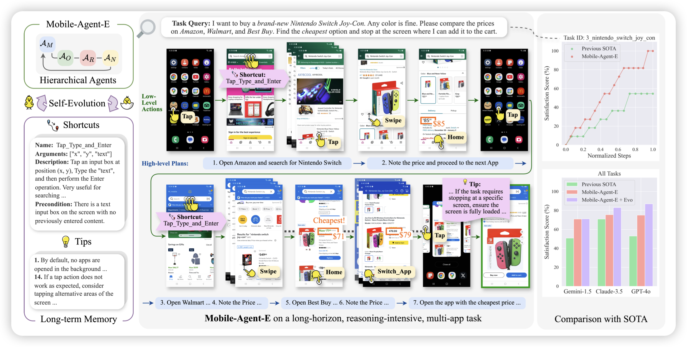 jiheng老师的工作,作者设计了一套mobile agent framework,同时还引入了夸任务的tip模块,让模型随着测试去积累经验。