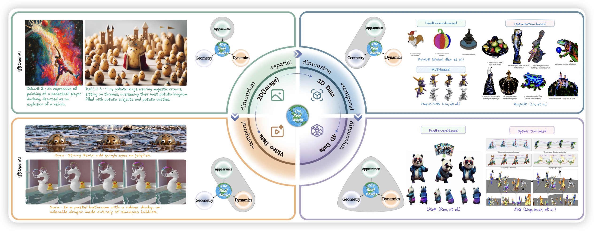 一篇aigc的综述,不过这篇文章里面,作者把text2image,text2video和cad-gen在一个框架里叙述,总体都属于生成式世界模型的一个大框架。