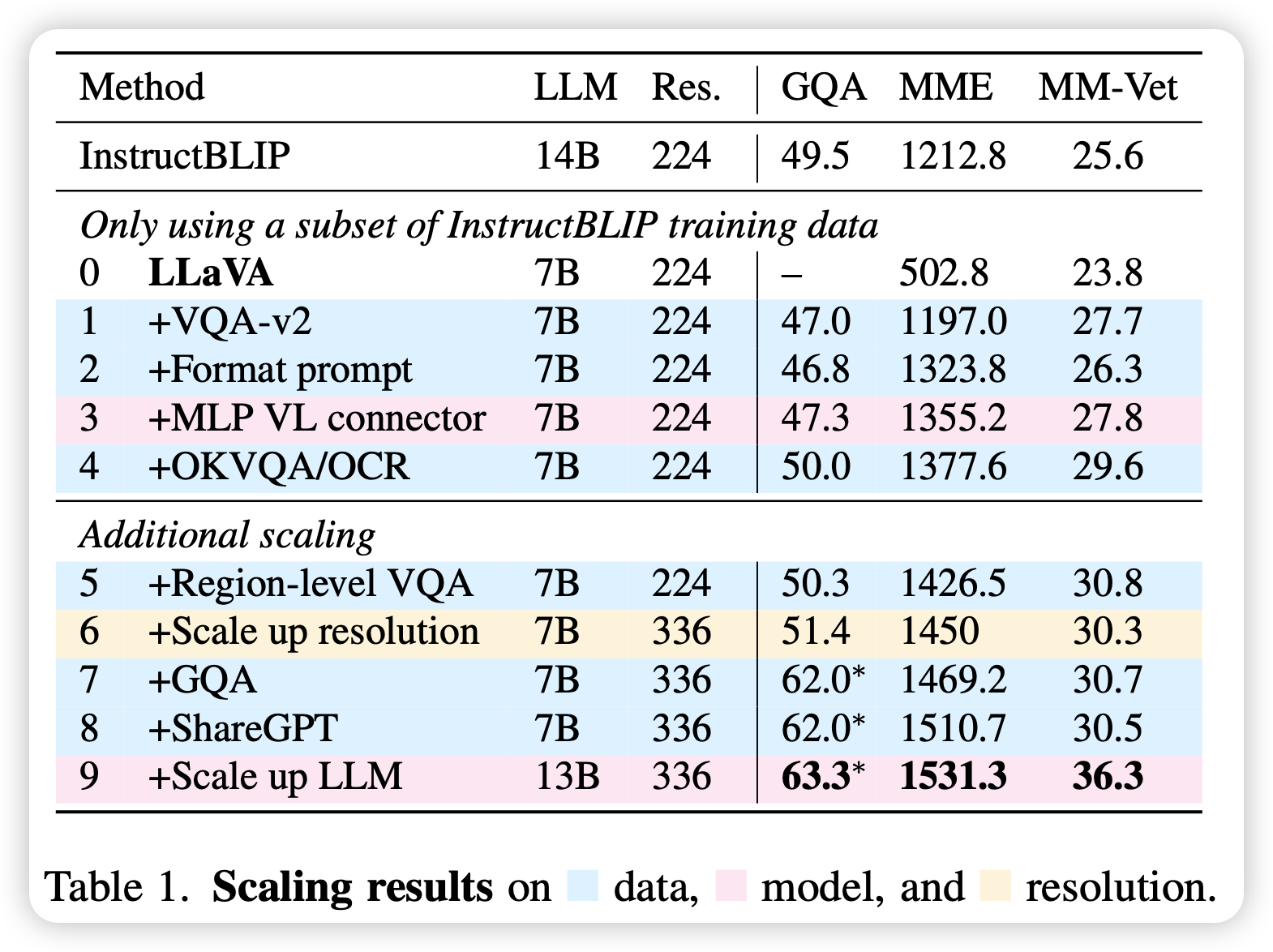 到了二期,论文只有短短5页。作者在方法上没什么更新,只是把LLM基座模型换成了13B,把image encoder换成了更大更强的CLIP-ViT-L-336px,然后把连接层的Linear换成了双层MLP。