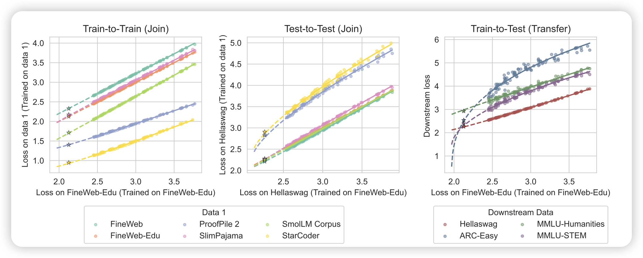 这名字起得大气,其实是一篇研究scaling prediction的工作。传统scaling prediction讲的是从一个小模型、或者大模型少步数的loss里,预测大模型在同样setting下的loss。作者认为,限制setting一样是一个很大的限制,能不能做跨越setting的预测呢?比如从task A loss预测task B loss。作者发现是可以的