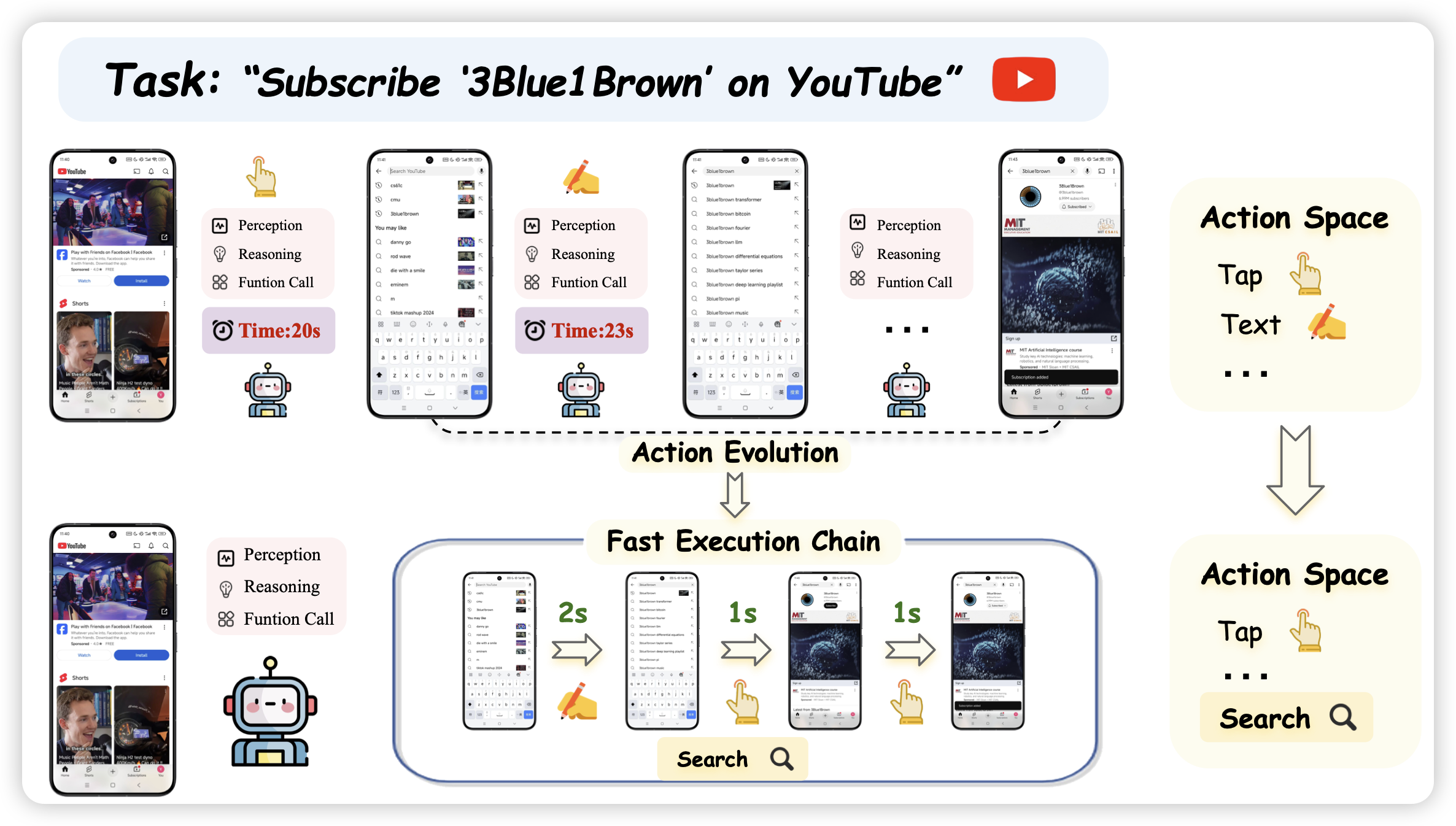 这篇工作,作者关注到gui agent的效率问题。能不能把经常出现的action组合,变成一个action,这样减少history里面的context占用呢?
