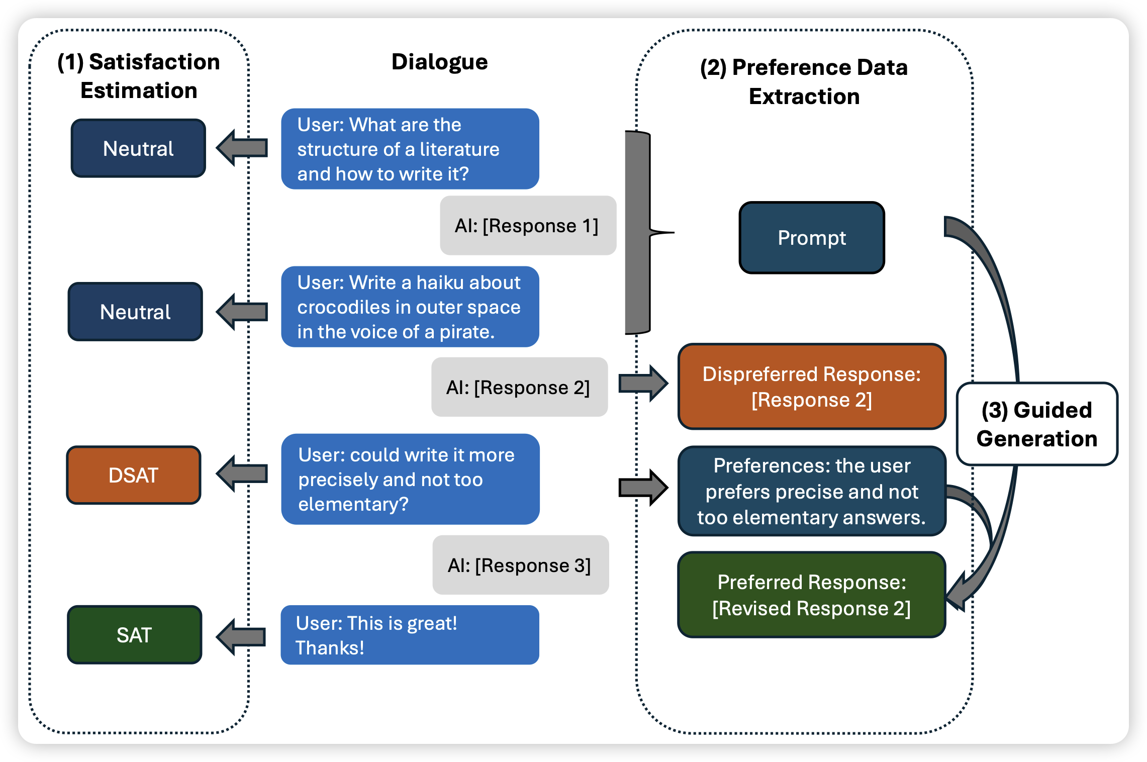 这篇论文瞄准了一个挺有意思的领域:在LLM上线以后,用户会和模型一直交流,用户不会帮公司点赞或者踩的按钮,而是会有文本的反馈。人类的反馈可以看做一种隐式的、带噪的对response的feedback。作者探索了是否有可能直接从这种反馈里面增强LLM能力。