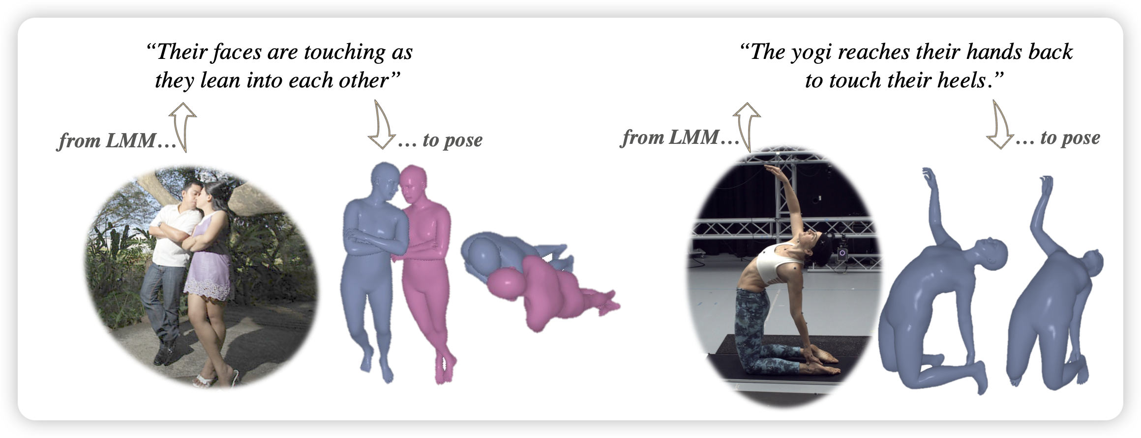 姿态检测领域的文章:这个任务是输入一张人的图片,要3d重建里面的人的姿势。作者认为目前的VLM应该有对于人体姿势的认知,希望可以让VLM对照片先给出一些对于姿态的描述,辅助后面的姿态重建模型做的更好。事实上,确实就好了很多