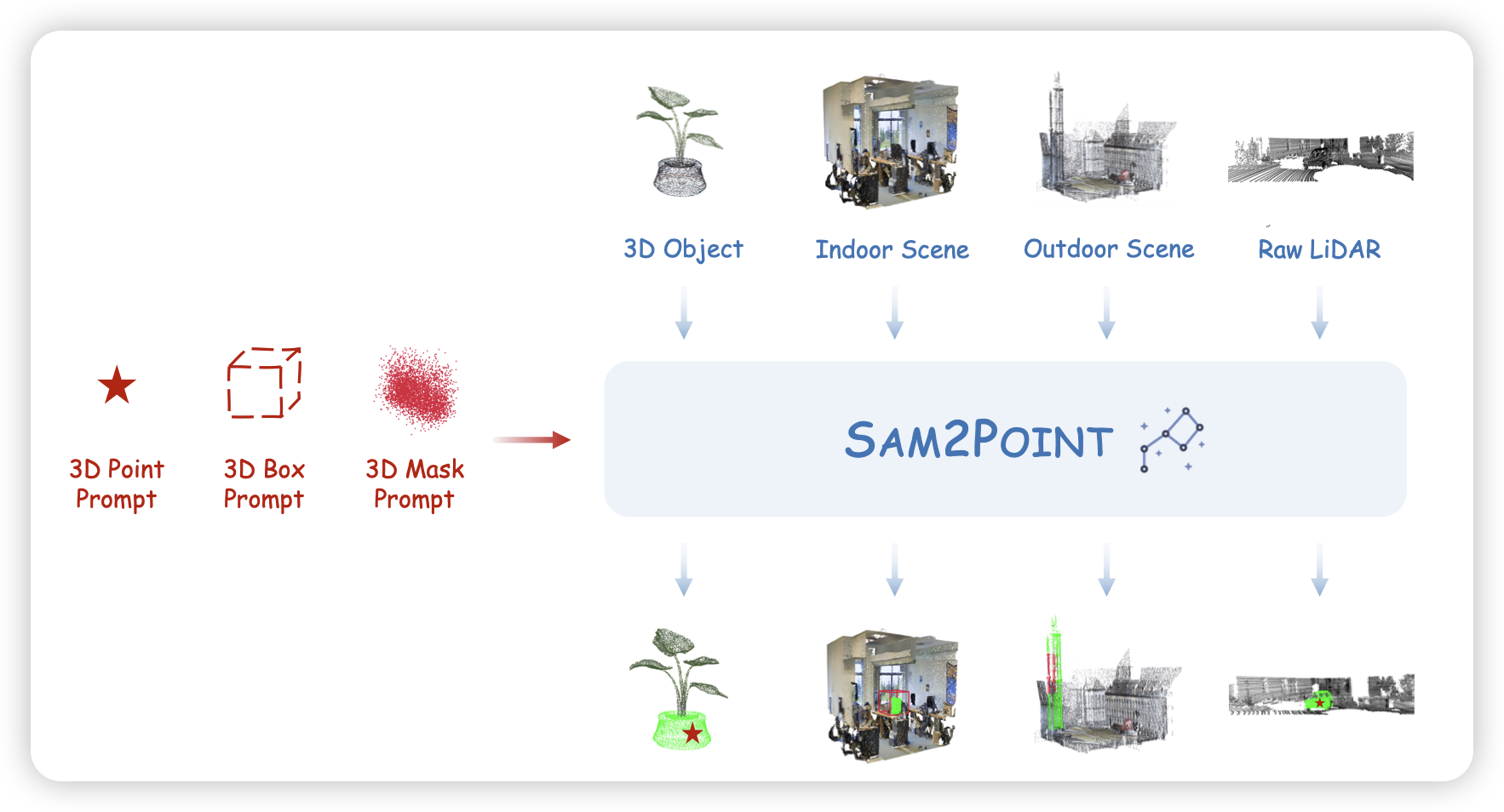 作者拓展了sam,把三维空间当成视频多图的样子输入给模型,让模型输出三维的segment,竟然效果还不错?