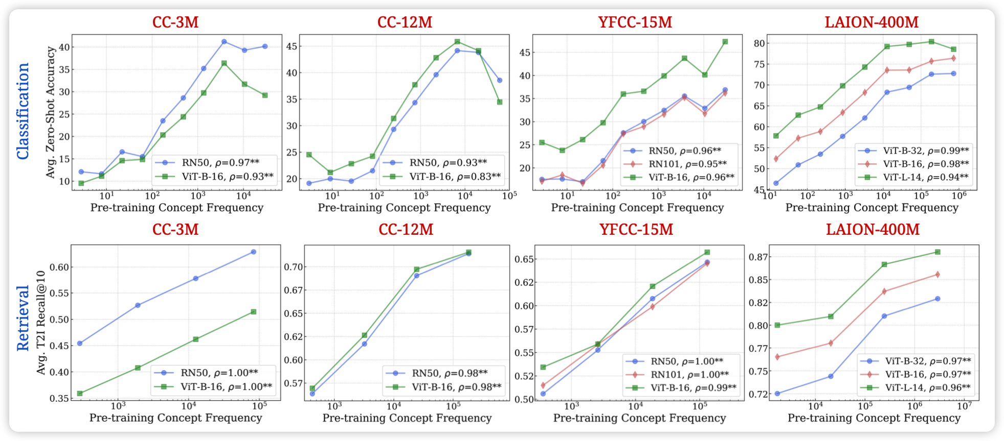 作者找到了一些所谓的zeroshot的concept,划分了每条数据属于哪些concept,然后测试了各家开放trainset的MLLM的数据集中每个concept的出现次数。发现"zeroshot" performance和训练集中concept出现次数成基本完美的scaling law。甚至,如果按照concept的语义相似度对别的concept加权, 还是完美符合scaling law……