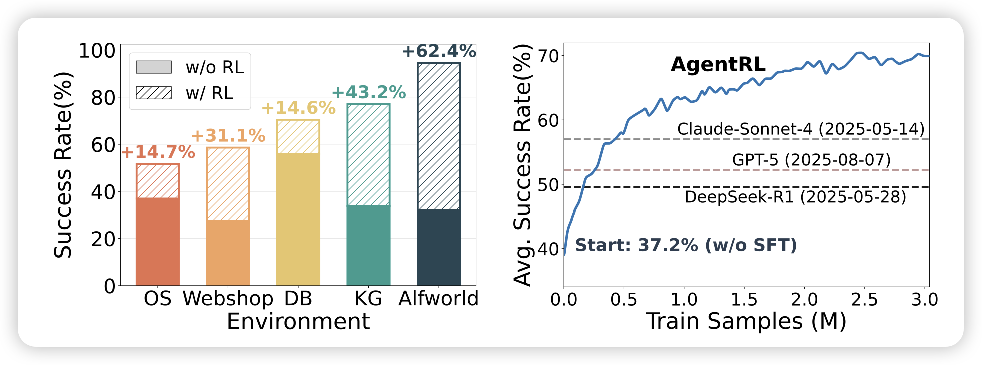 zhipu最近发了computerRL,MobileRL,今天又发了一篇agentrl,这篇工作里,作者混训了几个纯文本的agent场景,然后用的是神奇的全异步rollout