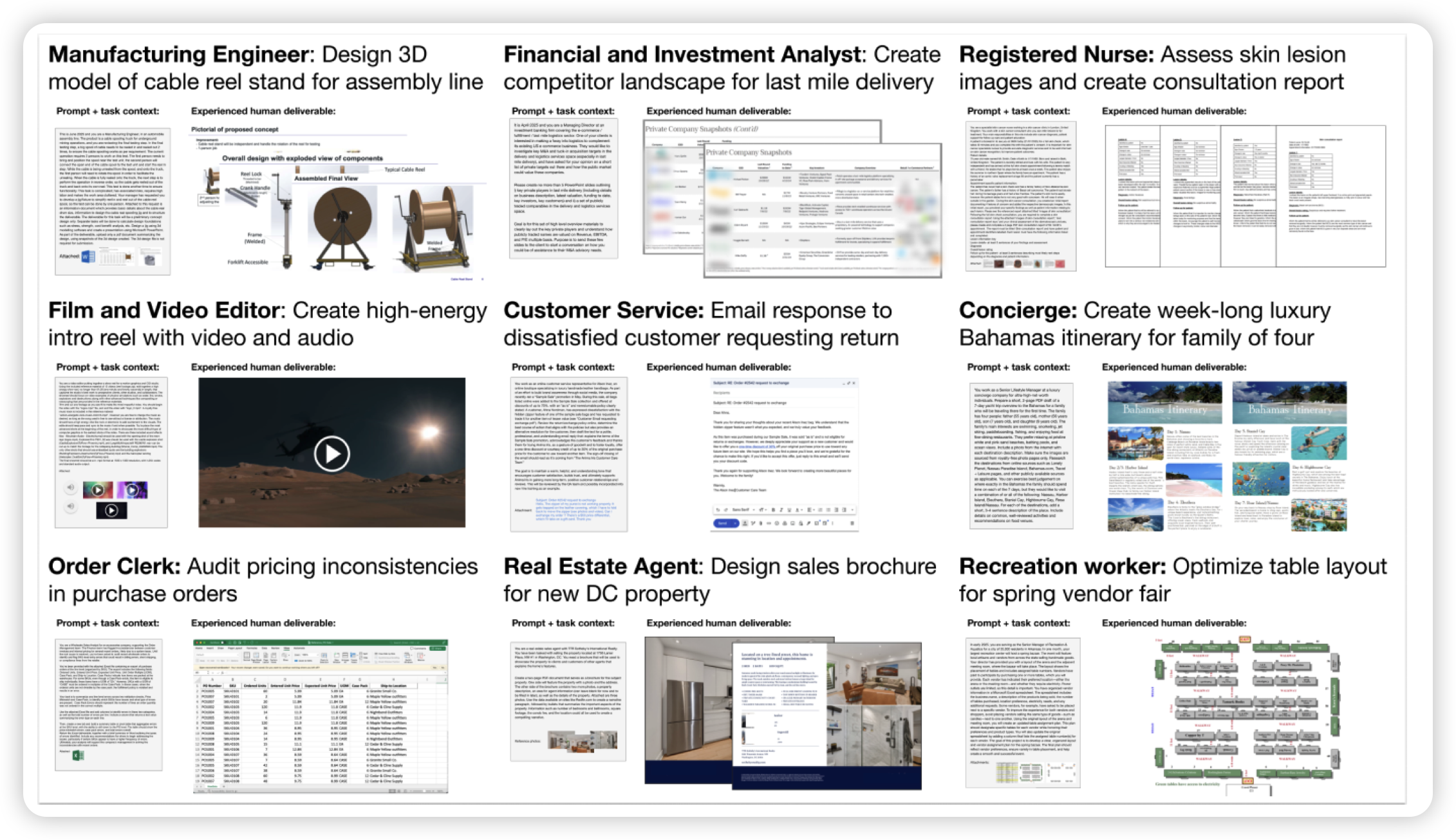 GDPval的论文挂出来了。这个benchmark瞄准了AI解决真实世界问题、产生经济价值的水平。openai找了真正的各行业专家来出题和给题目做verify,由此产出了大概1000题,开源了200题。