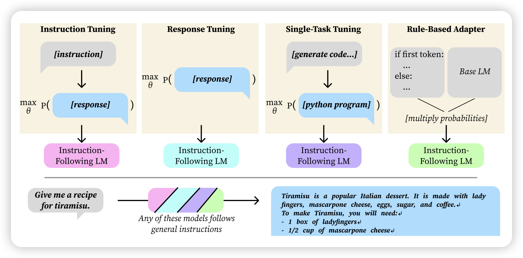 很有趣的工作,作者发现一个滑点:现在大家做instruction tuning训练,都是在(ins, response)对上训练,但这是必要的吗?作者发现,即使去掉ins,只让模型训练去直接生成response,竟然训出来的模型也有instruction following能力???甚至是,不需要在所有domain,即使只在某些domain看到一些response,也能在所有domain泛化出instruction following能力
