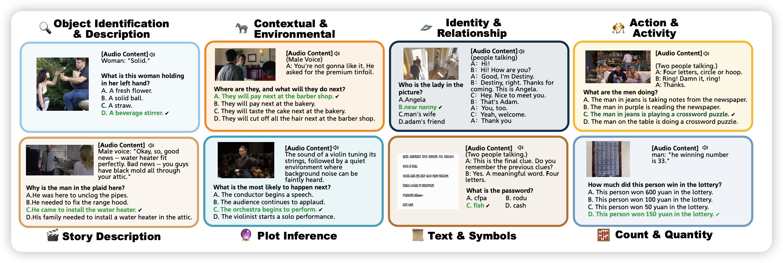 zhangge又出手了,这次是为omni模型设计的benchmark。涵盖了图片、视频、声音、文字多个模态