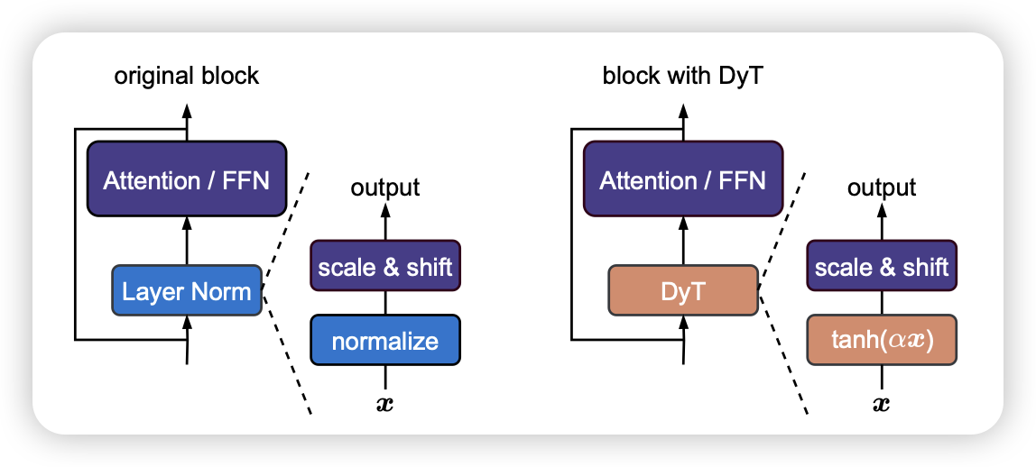 不是,科研也搞全明星?Jiachen Zhu, Xinlei Chen, Kaiming He, Yann LeCun, Zhuang Liu 谁来都得愣几秒。作者发现,normalization这个设计,从transformer 2017开始,一直就没换过(凡是想换的人,loss必爆nan)。作者这次还真找了办法换掉了,而且效果竟然不掉。