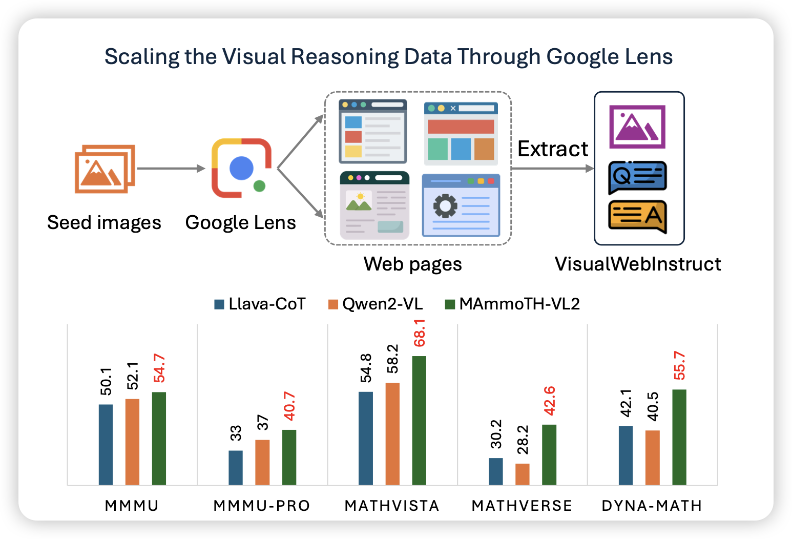 Wenhu老师的工作,乍一看还以为是deep research训练数据,原来是靠websearch构造sft训练数据。不过作者的流程也挺好玩的,作者主要解决的是VLM sft数据里缺少图片信息的问题。怎么解呢?作者发现,可以用google搜索这个图片相关的网页。这样的话,只要有一大堆图片,就能搜索到一大堆网页,然后对着网页出题了。